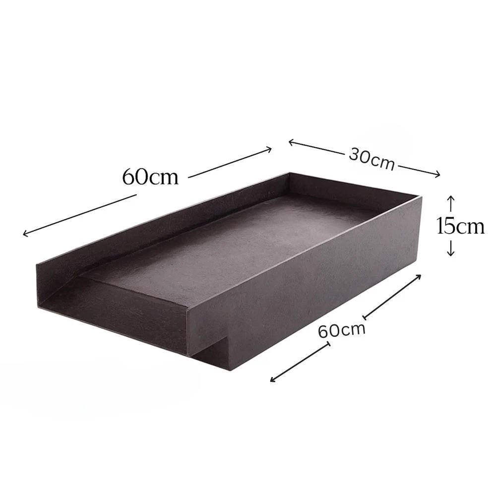يأتي مصب الشلال الجداري بطول 60 سم وعرض 30 سم وارتفاع 15 سم، مع مدخل مياه واحد بقطر 1 بوصة، مصمم لتقديم:
