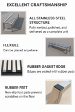 احصل على جودة احترافية ولمسة أنيقة في أي مساحة، مع هذا المقعد المصنوع بالكامل من الفولاذ المقاوم للصدأ (ستانلس ستيل)، المصمم بدقة متناهية وتشطيب مصقول يمنحه مظهرًا راقيًا وأداءً فائقًا.