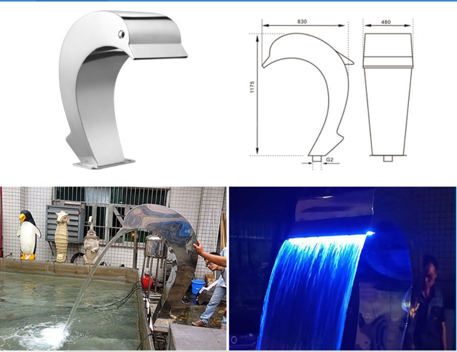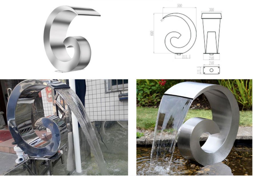 التركيب: يتم تصنيع مصبات الشلال المصنوعة من الاستيل المقاوم للصدأ بحجم ملائم ومواصفات قابلة للتثبيت والتركيب في مختلف الأماكن مثل المسابح والحدائق والمنازل والمكاتب.